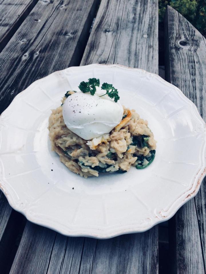 - Then add your cooked rice and wilted spinach, for that EXTRA CREAMY HIT you can add a little double cream along with your béchamel as this will make the dish more luxurious.