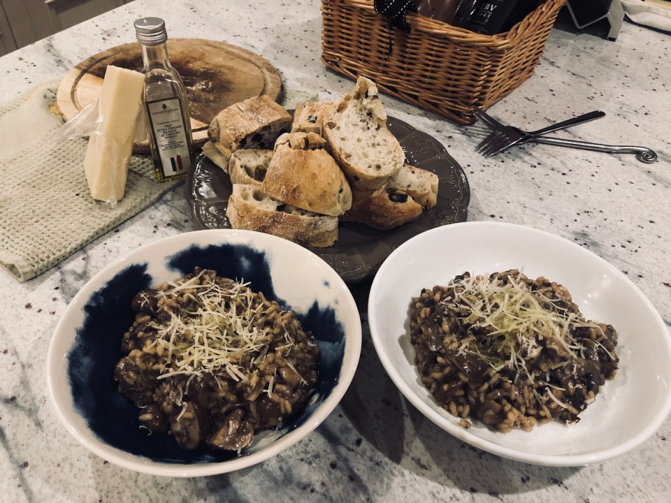 My Porcini and chestnut mushroom risotto, topped with a drizzle of Truffle Oil and vegan parmesan. See the link to my classic risotto recipe here