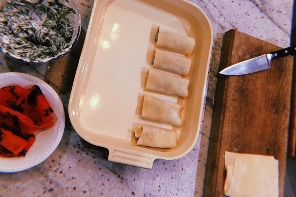 Ricotta cheese, spinach, lemon zest and nutmeg cannelloni