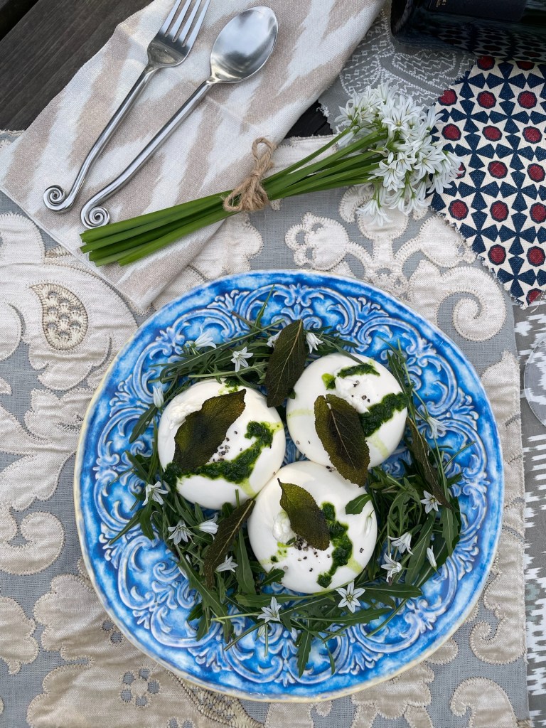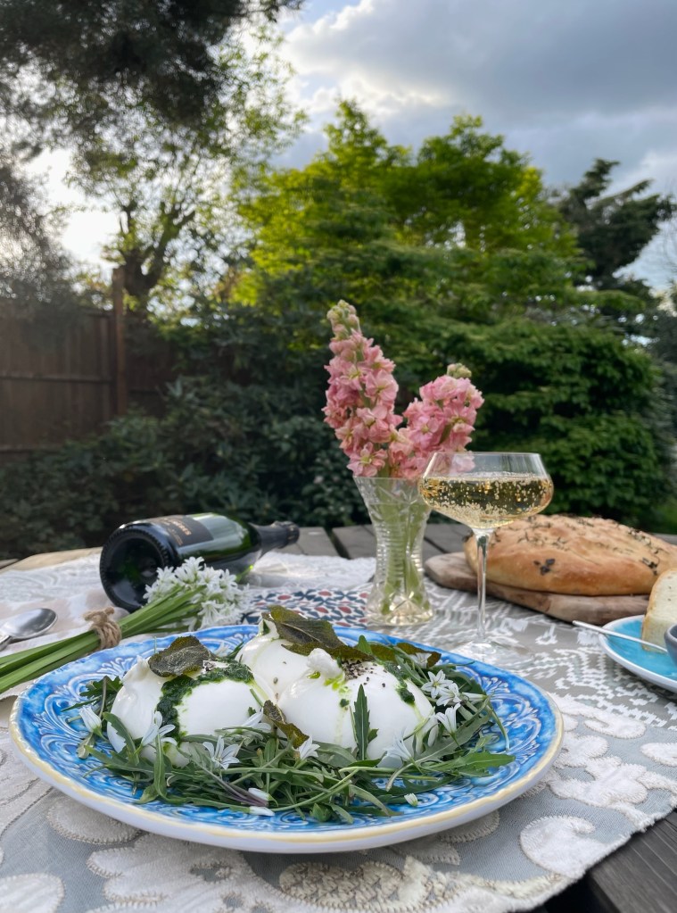 Bank holiday feast on May 2, 2022May 24, 2022 By thegourmetgent Burrata with foraged wild garlic oil, garden rocket, topped with edible wild garlic flowers Share this: Share on X (Opens in new window) X Share on Facebook (Opens in new window) Facebook Like Loading... Related