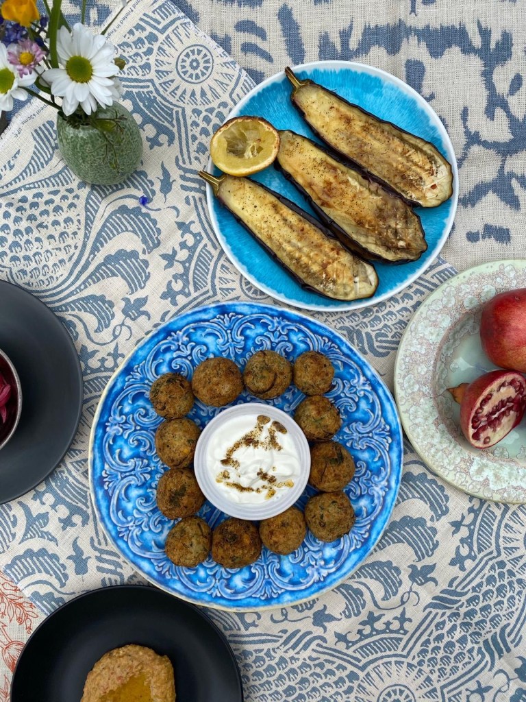 Garden herb GG falafels with harissa infused yogurt