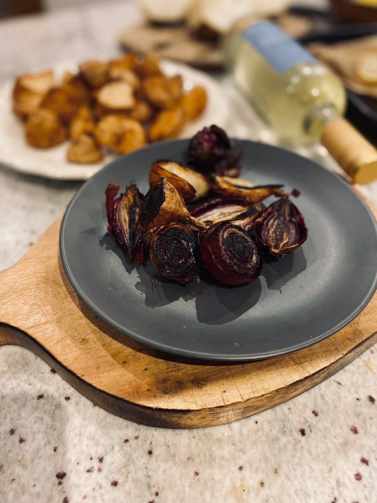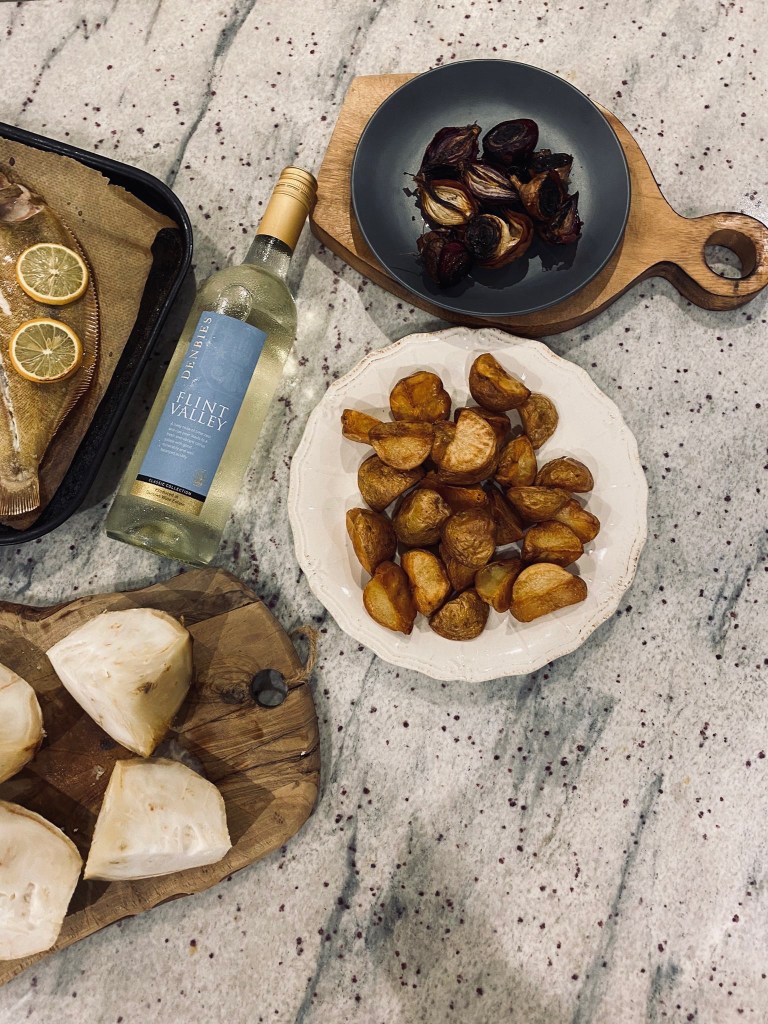 Lemon sole, whole salt baked celeriac, roast potatoes, buttered cavolo nero and burnt onions. Fish from my new local fishmongers Fish’D