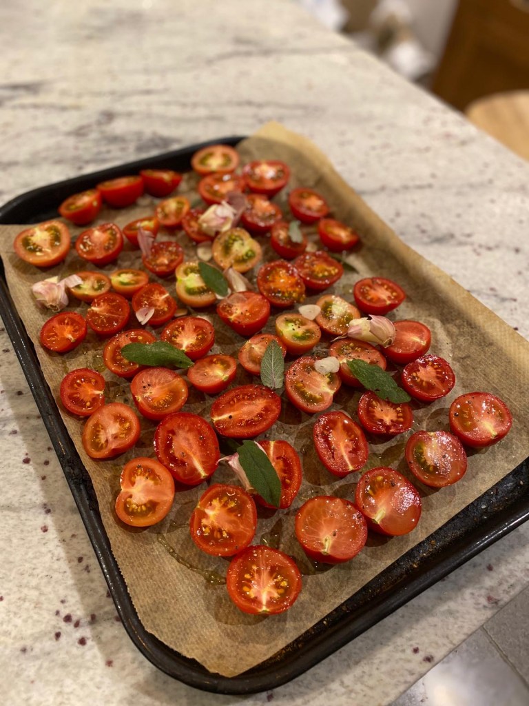 - After this add your crushed garlic and sage and roast for an additional 15 minutes to get them really crunchy and crisp.