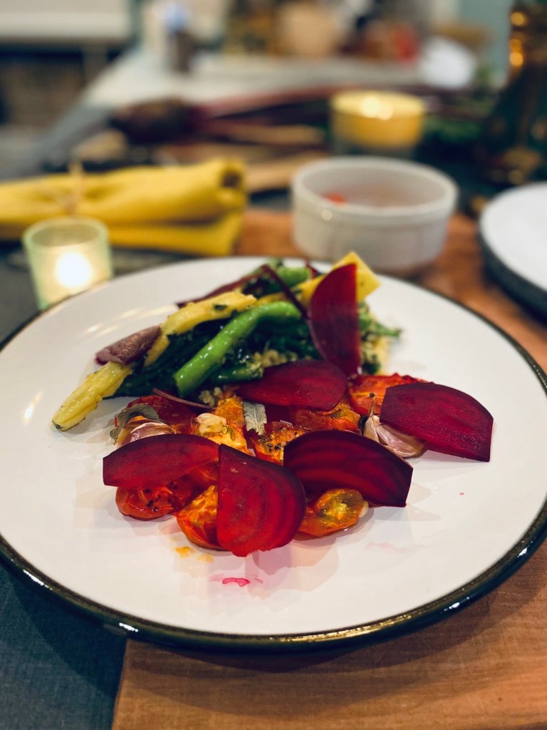 - Once roasted drizzle with an additional drop of olive oil and reserve to one side till required later on in the process. This dish is quite simple but highlights the beauty of the carrots and the fact that they are so fresh and different shaped.