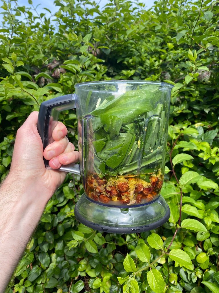 Three cornered leeks are a wild foraged food type which are found in season right now they get their name from the distinct three corners on the leaves. Luckily I have these located in my garden, if not you can get these from a local forager or if you cannot find this normal leek will give a more subtle undertone.