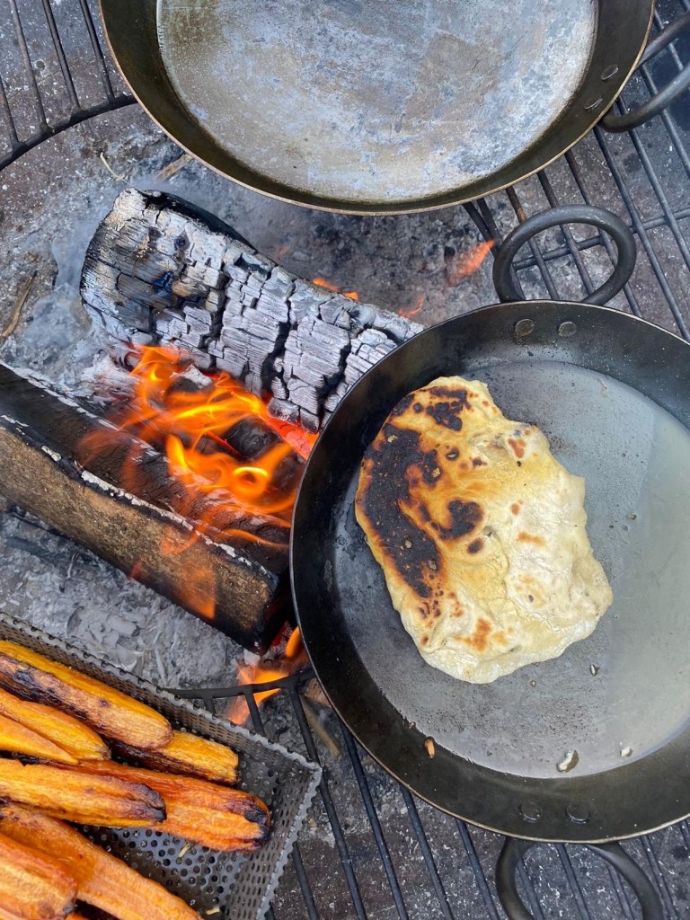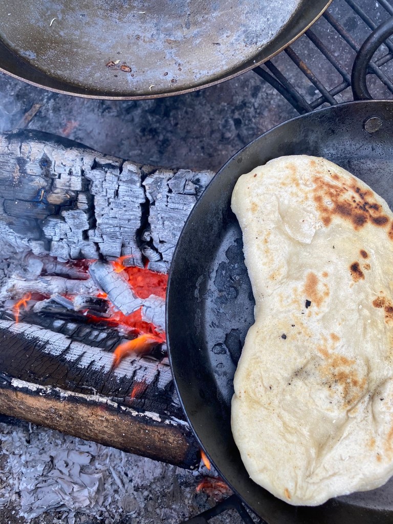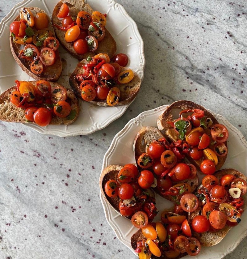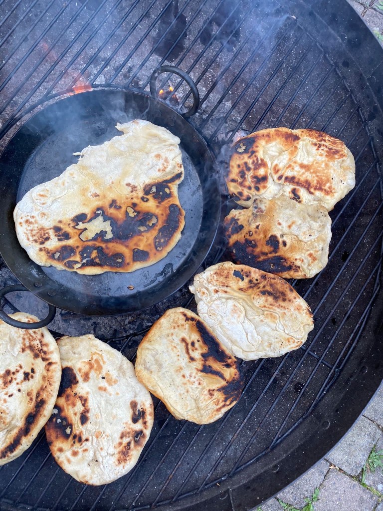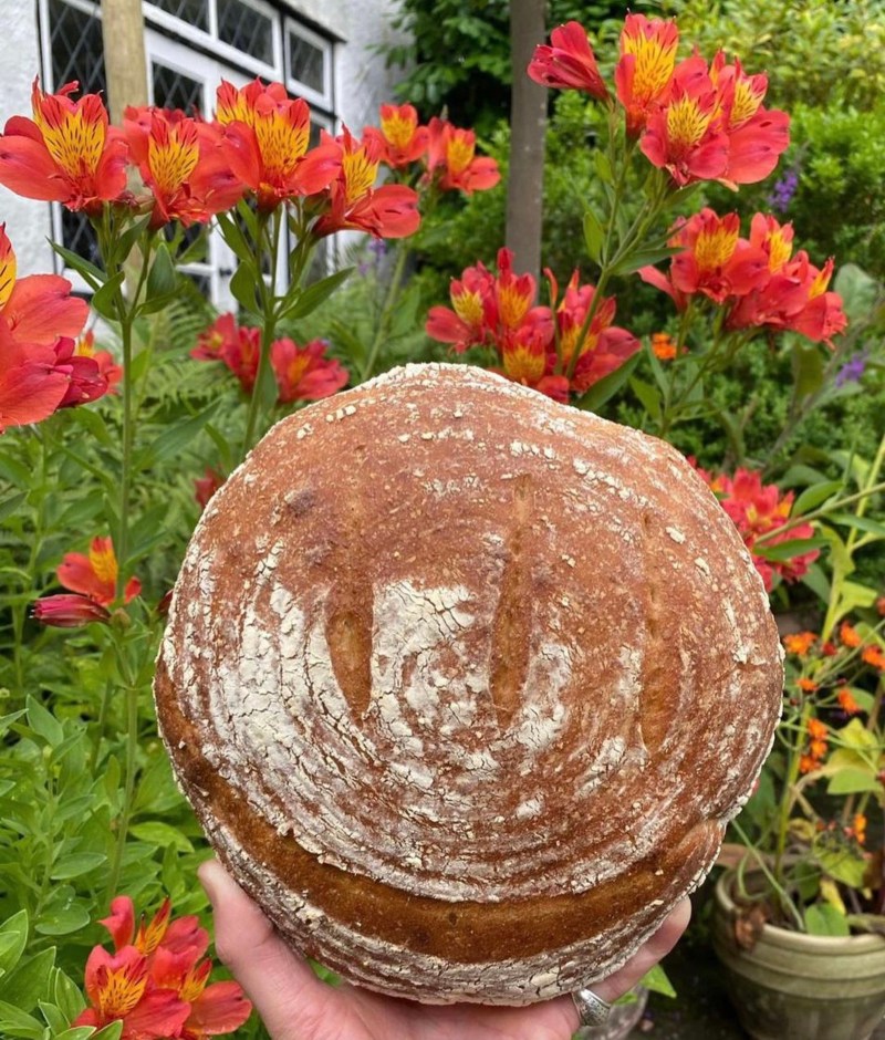 Fresh focaccia with garden herbs and seasonal wild garlic oil