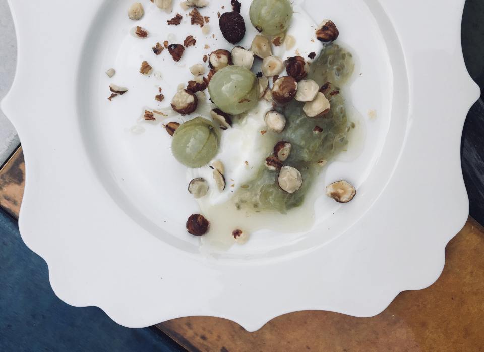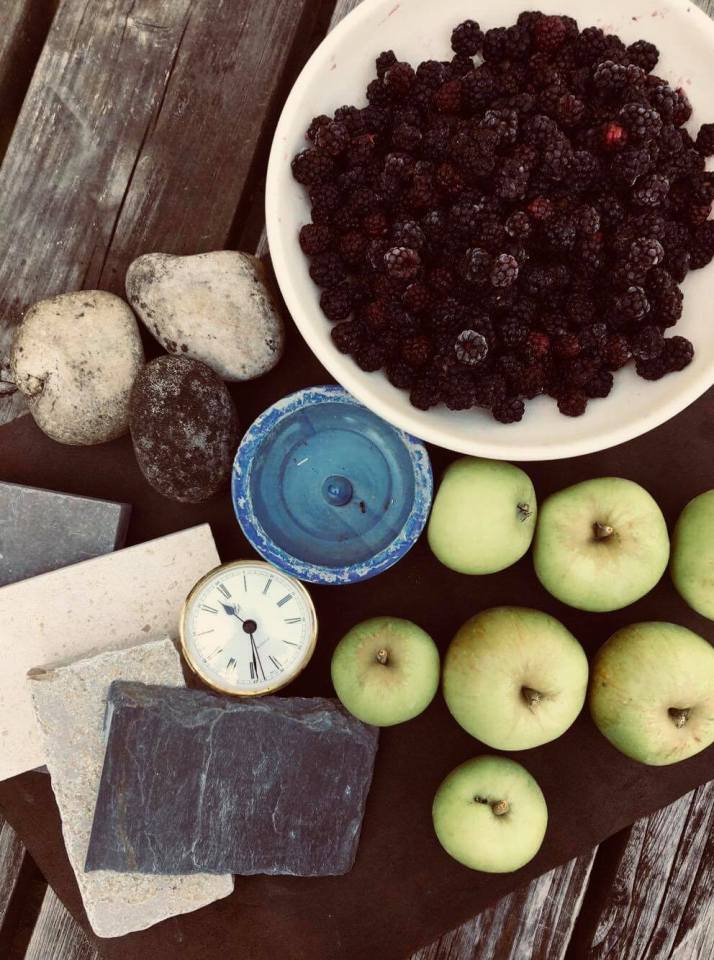 - Next lay out 6 artisan oven proof dishes lay your blackberries in the base in one even layer, next add your pistachio nuts along with a grating of fresh nutmeg, once the apples are cooked and cooled. Place on top of the blackberries.