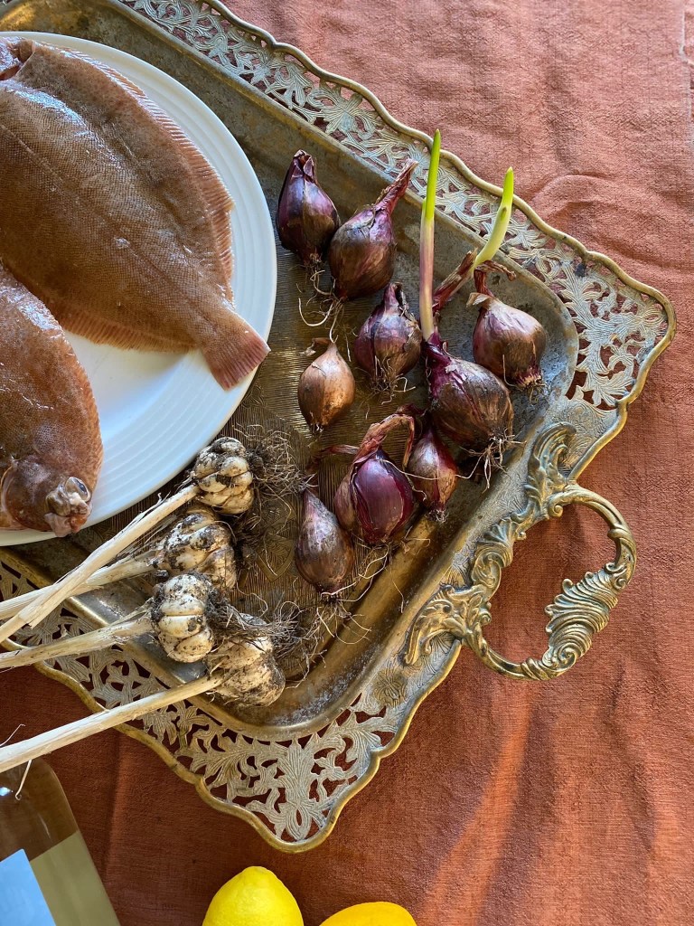 Lemon sole, whole salt baked celeriac, roast potatoes, buttered cavolo nero and burnt onions. Fish from my new local fishmongers Fish’D